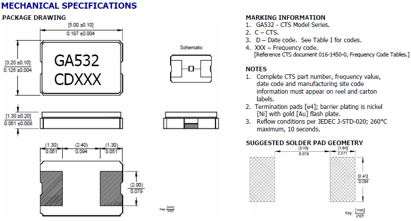 除緩沖器輸出外,振蕩頻率較低。CTS晶振,貼片晶振,GA532晶振